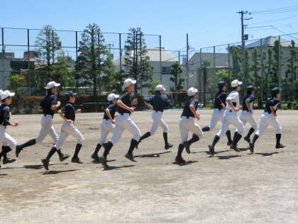 校庭では、野球部が練習しています。列と足をそろえたランニングは、いつ見ても気持ちがいいですね。(遠藤)