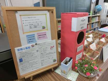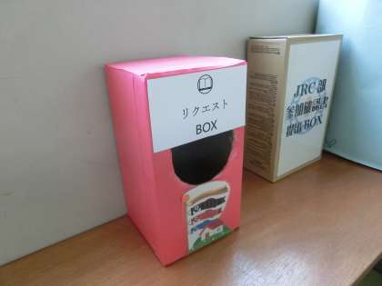 図書室の司書さんが、図書リクエストBOXを作ってくれました。図書室内と職員室前の廊下に設置してあります。読みたい本があるときは、リクエスト用紙に記入し、BOXに入れてみよう。(遠藤)