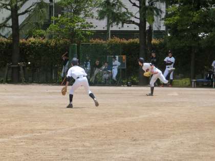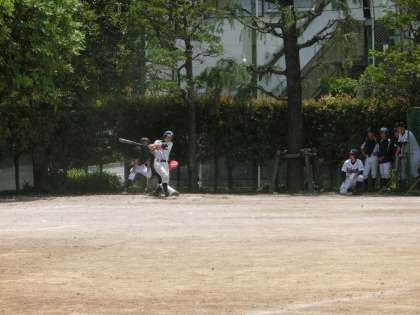 校庭では、野球部が、品川区の荏原六中と練習試合をしています。両チームともよく声をだし、白熱した試合が展開されています。(遠藤)