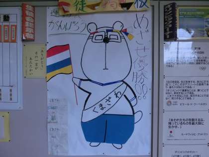くまざわくんのデザインがリニューアルされました。運動会に向けて、体操着バージョンです。(遠藤)
