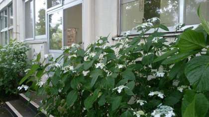 あいにくの天気ですが、あじさい教室入口前のあじさいが咲き始めました。四季の移り変わりを感じる一コマです。3年生は来週月曜日から修学旅行です。古都に咲くあじさいの趣にも注目してみましょう。(校長)