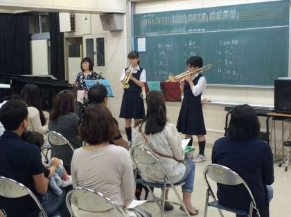 トップバッターはトランペットとトロンボーンのデュエットです。曲はパッヘルベルのカノン。緊張している中、よく頑張っていました。