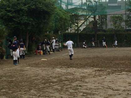 今日はグランドの状態があまりよくありませんが、大人チームとの練習試合が行われていました。