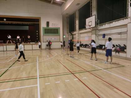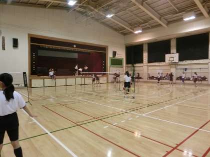 バドミントン部も1,2年生のみの活動です。2年生が、指示を出して練習を進めていました。(遠藤)
