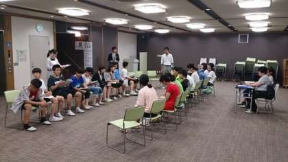 1日を振り返り、明日の確認を行う大切な会議です。しっかり話し合いができています。