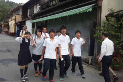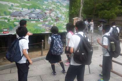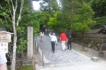 班別タクシー行動も後半に入りました。銀閣寺では運転手さんの案内を真剣に聞いてます。(田村)