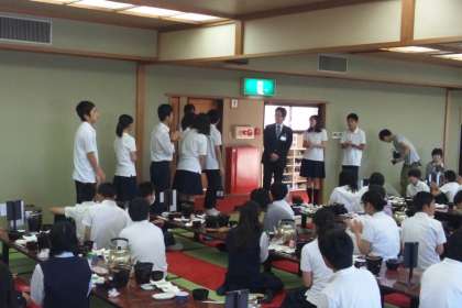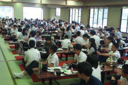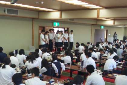 朝食のあと、実行委員から昨日の班行動についての話がありました。全班時間通りに行動できたこと、スローガンを達成できたことなどを学年全体で確認できました。最終日のクラス別バス行動もがんばりましょう。(田村)