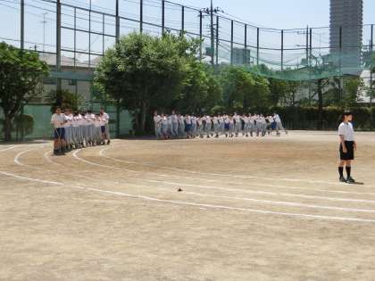 3年生が運動会の学年練習を行っています。男子は、トラックで大むかで競争の練習、女子は、フィールドでダンスの練習です。修学旅行明けで疲れていると思いますが、ケガに注意してがんばりましょう。(遠藤)