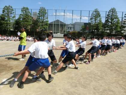1年生が、運動会の学年練習を行っています。今回は、綱引きの練習です。動きをきちんと覚えて、本番でスムーズに移動できるようにしておきましょう。(遠藤)