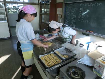 今日の家庭科部は、クッキーを焼いています。調理室からは、甘くていい香りが漂ってきます。作るのと同時進行で片づけもしていました。効率がいいですね。(遠藤)