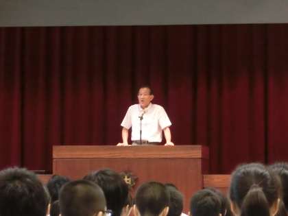 本日は、全校朝礼がありました。校長先生から「仲間が全力で取り組む姿を応援し合う運動会にしていきましょう。」というお話がありました。