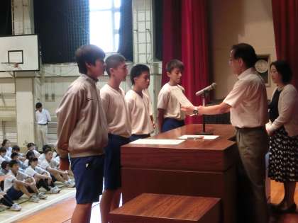 陸上部の春の世田谷区大会、5月の地域別大会の表彰がありました。陸上部は都大会に出場します。(遠藤)