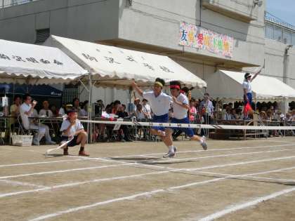 短距離走の様子です。100mを全力疾走で駆け抜けます。学年が上がるにつれて、走るスピードも上がり、迫力があり見応えのあるレースになっていました。(遠藤)