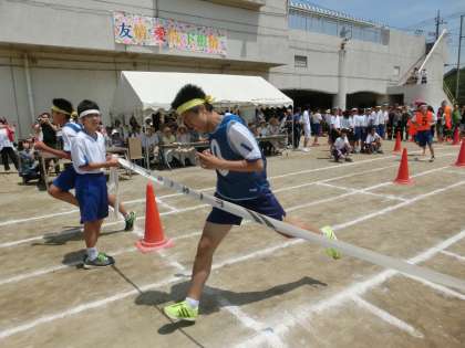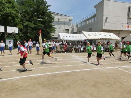 長距離走の様子です。女子は1000m、男子は1500mを走ります。男女とも、新記録を目指してがんばっていました。(遠藤)