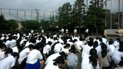 地震を想定しての避難訓練を行いました。今回は、避難開始から報告完了まで、5分以上かかってしまいました。次回は「お・か・し・も」をきちんと守って、すばやく避難できるようにしましょう。(遠藤)
