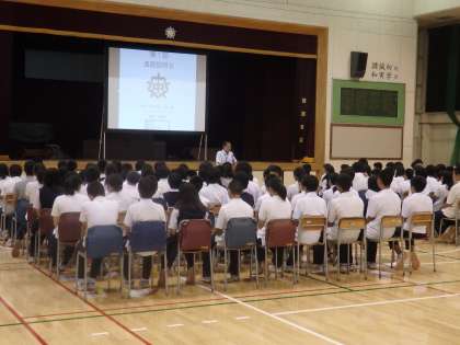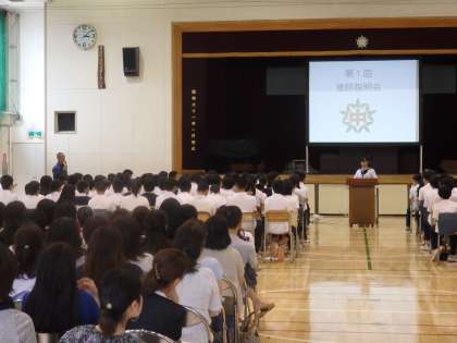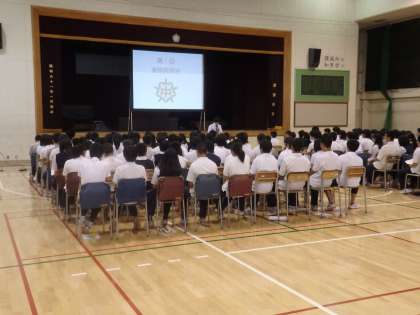 本日6校時、第1回進路説明会を行いました。前半は校長先生からのお話と、昨年度卒業した生徒2名の受験体験談がありました。生徒たちも先輩の話を熱心に聞いていました。(田村)