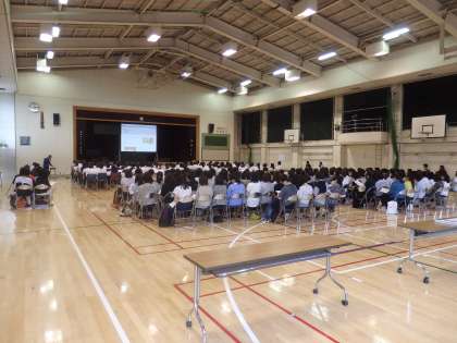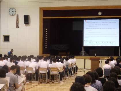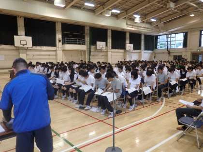 進路説明会の後半は進路指導主任の水田先生による高校受験を中心とした進路の流れの説明を行いました。生徒の皆さんは今日の説明を踏まえ、ご家庭で進路についてよく考えましょう。また、本日はたくさんの保護者の皆様に参加していただき、ありがとうございました。(田村)