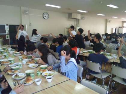 3日目の朝食です。朝からパンやスープをおかわりして、食欲もあり、みんな元気ですね。片付けもきちんとできました。(遠藤)