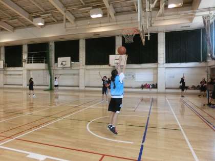 午後の体育館では、女子バスケットボール部が活動しています。8分×4で1試合分の時間、フットワークとダッシュをして、今、自分たちが、どのくらい走れるのか体験をしました。1試合走り切れるだけの体力をつけていきましょう。(遠藤)