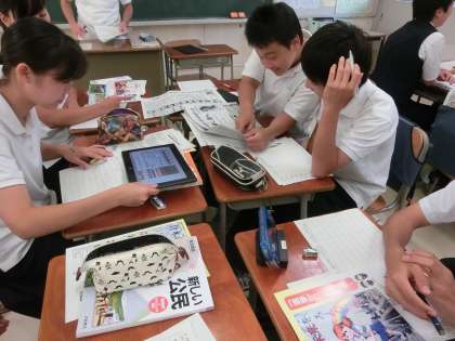 3年生の社会の様子です。ICTとNIEを用いて、参議院議員選挙の仕組みや制度について学習しています。(遠藤)