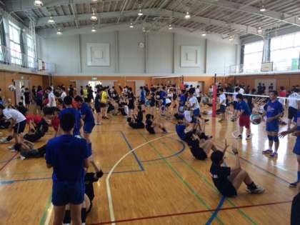 本日は男子バレーボール部が高校生との合同練習会に参加しています。様々な種類の練習方法を勉強します。貴重な高校生との練習でスキルアップを目指しましょう。(森川)