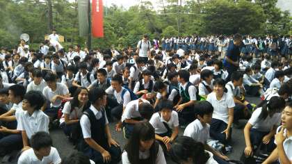 国立劇場に到着しました。区内の各中学校もぞくぞく来ています。(田村 )