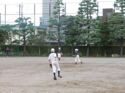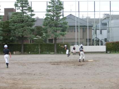校庭では、野球部が活動しています。実戦を想定しての守備練習をしていました。捕球するまでボールから目を切らず、捕球後は、すばやく送球できるようにしましょう。(遠藤)