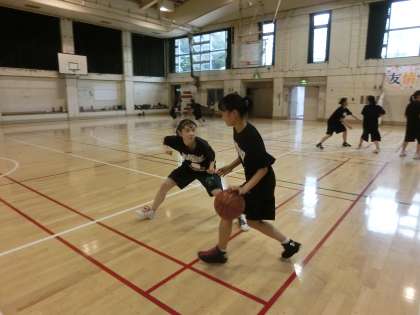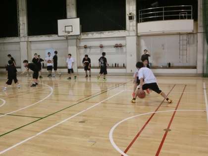 体育館では、バスケットボール部が活動しています。声を出し全力でフットワークをした後、1対1でディフェンスの練習をしています。今日は、卒業生が練習の手伝いに来てくれています。部を支えてくれている保護者や先輩たちに感謝する気持ちを忘れないようにしましょう。(遠藤)