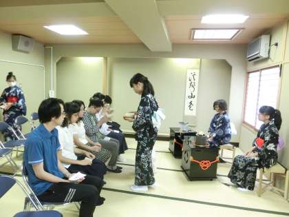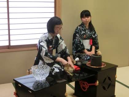 茶道部のお茶会が行われています。3年生が、これまで稽古してきた裏千家のお点前を披露しています。3年生はこれで引退となります。お疲れ様でした。(遠藤)