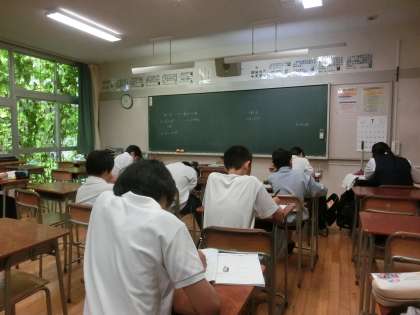 1年生の数学の補習が行われています。文字式の基礎・基本を夏休みの間にきちんと復習し身につけて、2学期の授業に備えておきましょう。(演奏)