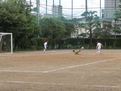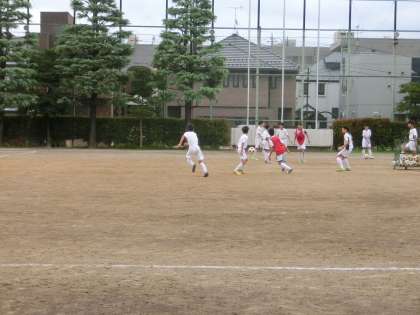 校庭では、サッカー部が活動しています。ディフェンスの裏に抜け出す動きの練習をしていました。ディフェンスの裏のスペースへパスが通れば、ゴールキーパーと1対1になり決定的なチャンスになりますね。オフサイドにならないように息を合わせましょう。(遠藤)
