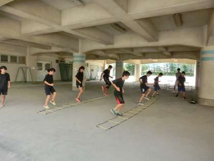 陸上部は朝の涼しい時間から練習を始めています。ラダートレーニングで敏捷性を鍛えていました。熱中症にならないように、水分補給をきちんとしましょう。(遠藤)