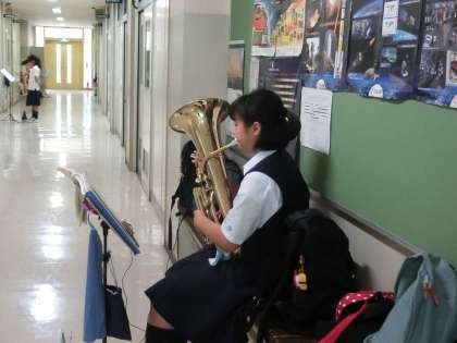 吹奏楽部は、今日も朝から活動しています。各パートごと個人練習をしていました。一人ひとりの技術を向上させて、みんなで合わせたときにすばらしい合奏になるようにがんばりましょう。(遠藤)