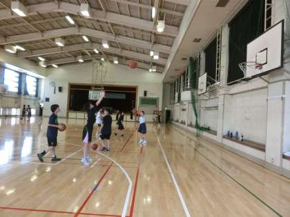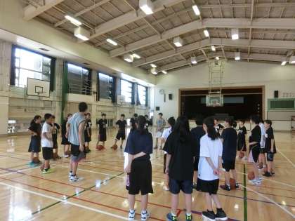 午後の体育館では、バスケットボール部が活動しています。フットワークの後、フリースローを打っていました。試合では、息が切れている状態でフリースローを打つことがほとんどです。常に試合を想定して練習に取り組みましょう。(遠藤)