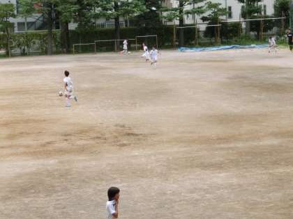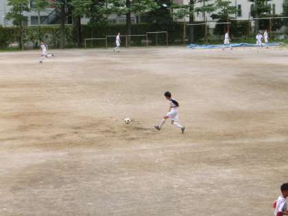 校庭では、サッカー部が活動しています。3人でポジションを入れ替えたり、サイドチェンジをしたりして攻める練習をしていました。相手のスピードに合わせスペースへ正確なパスを出しましょう。(遠藤)
