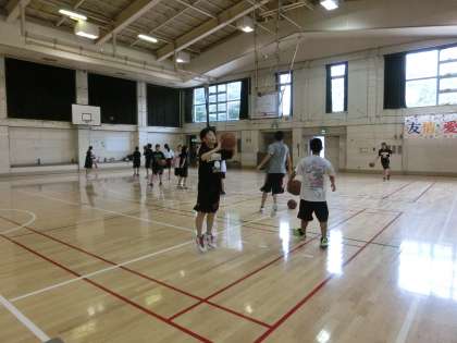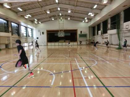 午後の体育館では、バスケットボール部が活動しています。1試合走り切れるだけの体力をつけるために、フットワークやターンダッシュをしています。どの練習メニューにも必ず目的があります。その目的を理解して取り組みましょう。(遠藤)