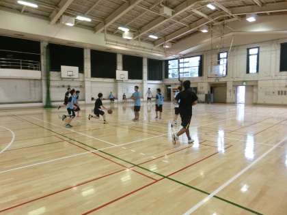 午後の体育館では、男子バスケットボール部が活動しています。卒業生が練習の手伝いに来てくれています。先輩たちからアドバイスをもらって、自分のプレーの質や技術を向上させていきましょう。(遠藤)