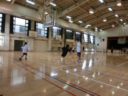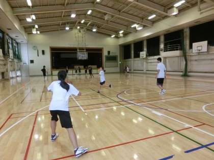 15時から体育館では、女子バスケットボール部が活動しています。3メンや5メンの動きを確認しています。頭で考えてから動くのではなく、考えるよりも先に動けるくらいになるまで練習しましょう。(遠藤)