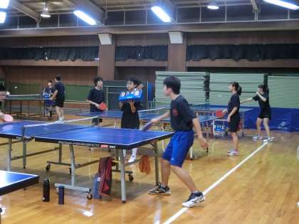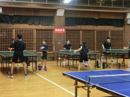 卓球部は、1年生対2年生の試合をしています。1年生は、2年生から1点でも多く取れるようにがんばりましょう。(遠藤)