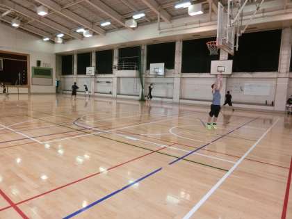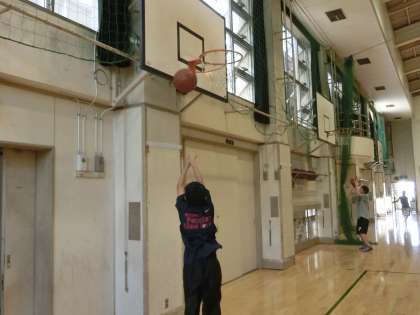 午前中の体育館では、男子バスケットボール部が活動しています。昨日の練習試合で出た課題のゴール下シュートの練習をしています。真上にジャンプして、ボードにボールを当ててシュートを決めるようにしましょう。(遠藤)