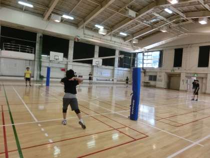 15時から体育館では、男子バレーボール部が活動しています。ボールを強く打つ練習をしていました。今日は気温も湿度も高いので、水分補給をきちんとして、熱中症にならないように注意しましょう。(遠藤)