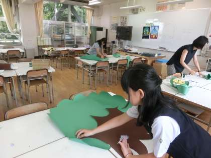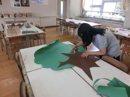 美術部の生徒たちが、人権の木を作成してくれています。思いやり掲示板に掲示し、2学期からの人権に関する活動に利用していきます。(遠藤)