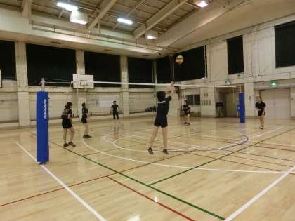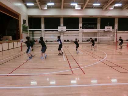 15時からは、バレーボール部が活動しています。男子は、レシーブの姿勢でボールを落とさないように、サイドステップをしていました。女子は、オーバーハンドパスの練習をしていました。(遠藤)