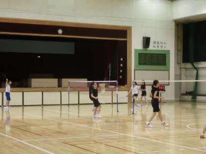 午後の体育館では、バドミントン部が活動しています。顧問の松本先生も生徒と一緒にシャトルを打っていました。気温が高く蒸し暑いので、水分補給をきちんとして熱中症にならないようにしましょう。(遠藤)