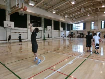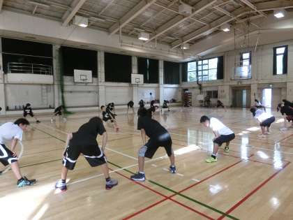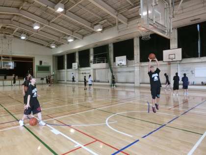 朝から、バスケットボール部が活動しています。シュートフォームを意識して、ゴール下シュートを打ちましょう。(遠藤)