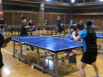 朝から卓球部が元気に活動しています。今日は、部内大会を行っています。どの台でも白熱した真剣勝負が繰り広げられていますね。(遠藤)