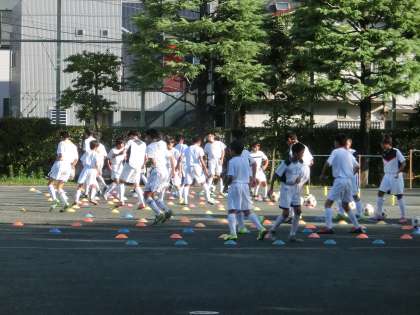 サッカー部は、少し遅めの練習開始です。短い練習時間なので、集中して中身の濃い練習にしましょう。(遠藤)