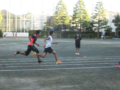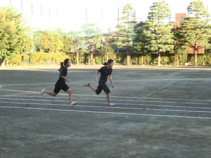 涼しい時間から、校庭で陸上競技部が活動しています。30mの記録を測っていました。(遠藤)