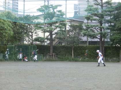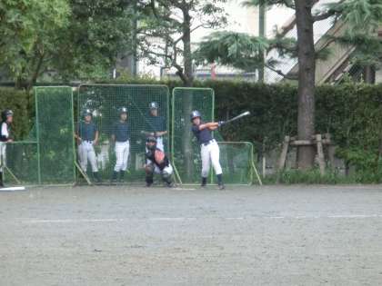 校庭では、小雨の中、野球部が活動しています。実戦形式の練習をしていました。(遠藤)