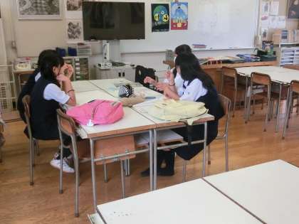 美術部が活動しています。校内作品展に出展する作品やアートガラスの作成をしていました。(遠藤)